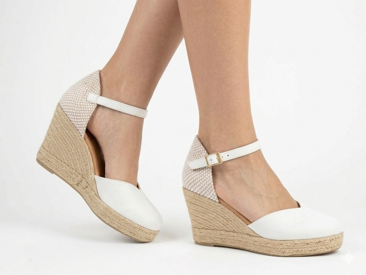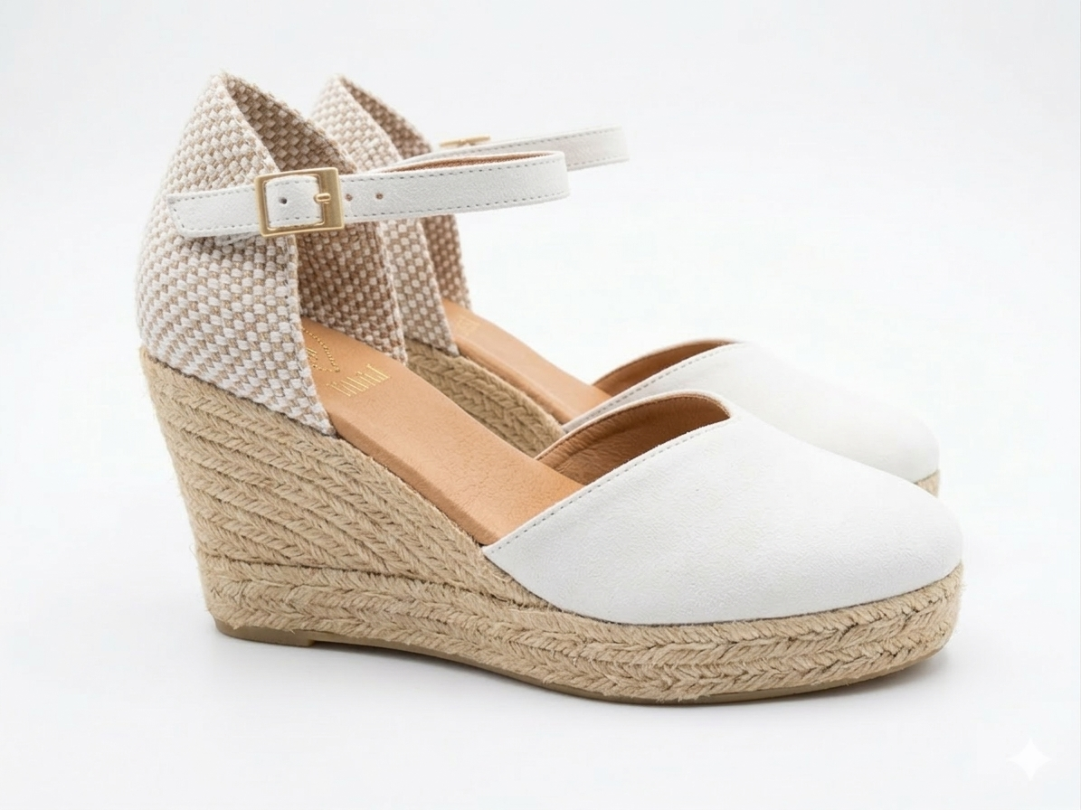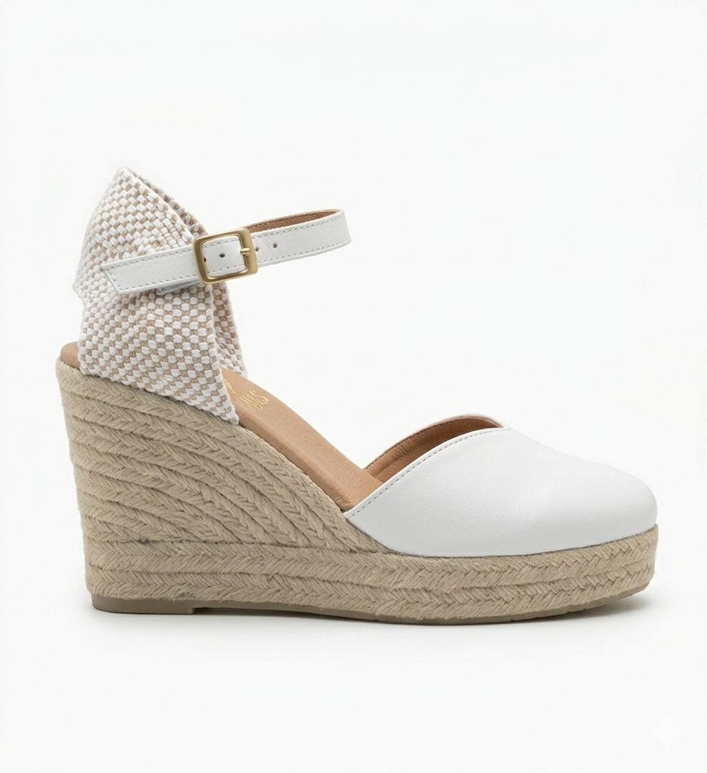 Lleva tu estilo a un nivel superior con estas exclusivas cuñas de MIAS. Un diseño que combina la esencia artesanal del esparto con elegancia y sofisticación. Confeccionadas en piel blanco premium, con talón calado y...
