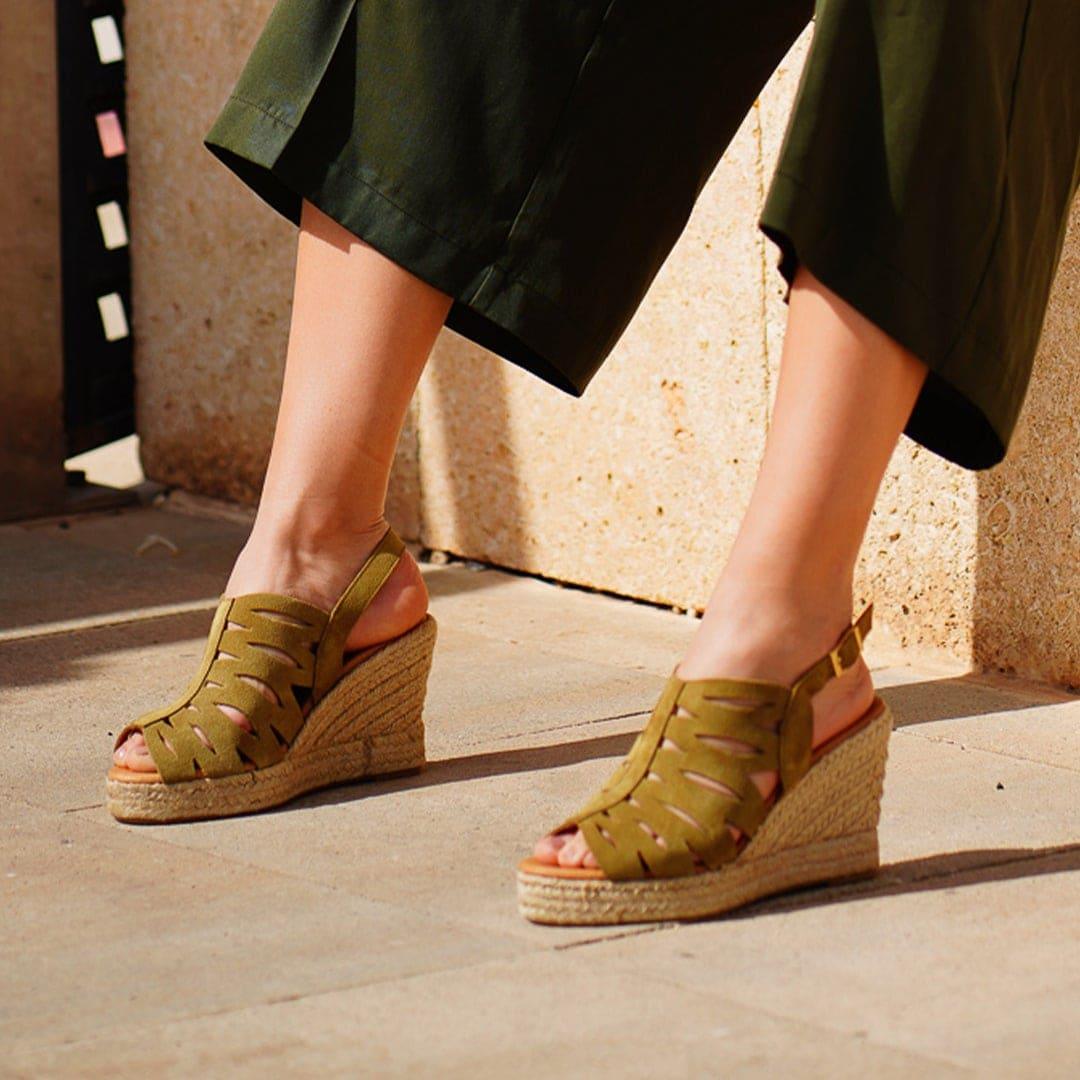 • Cortes en serraje vacuno color kaki.